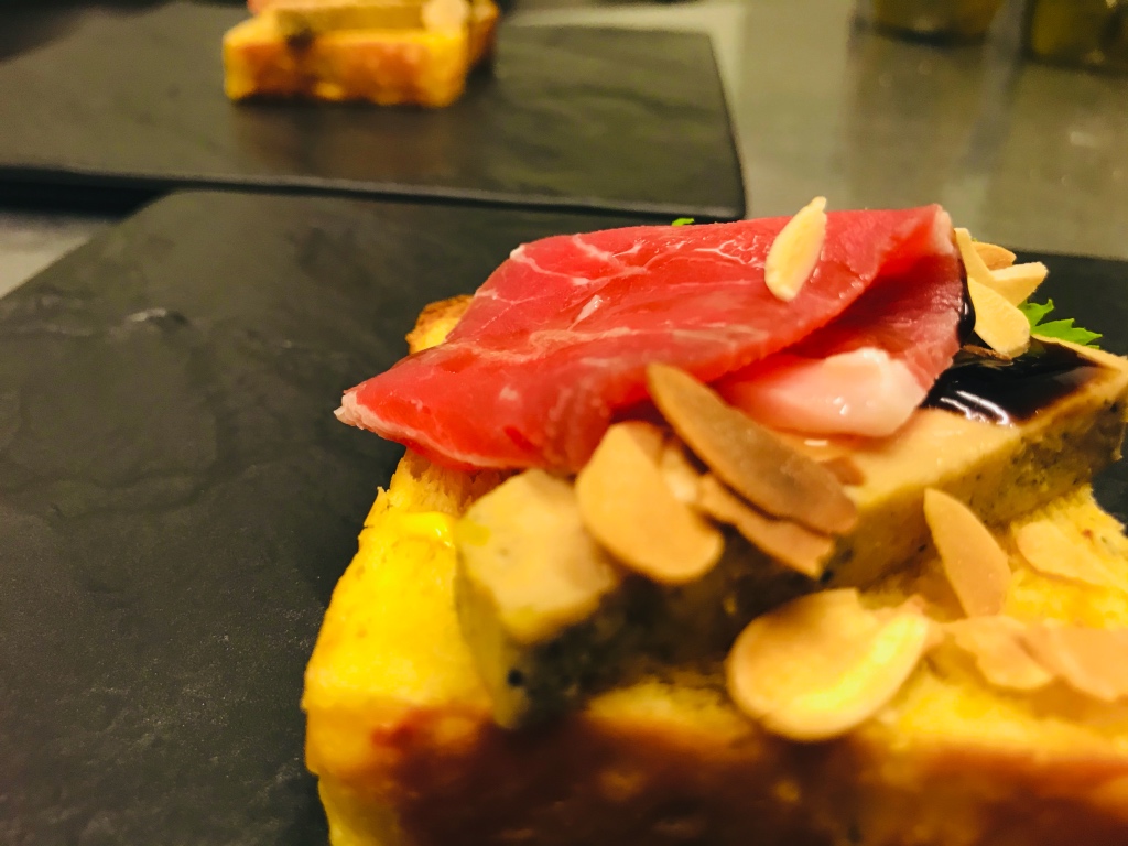 フォアグラと生ハムのブリオッシュオープンサンド